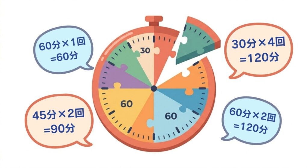 - 柔軟なスケジュール:今週は30分、来週は60分など、予定に合わせてパズル感覚で。
