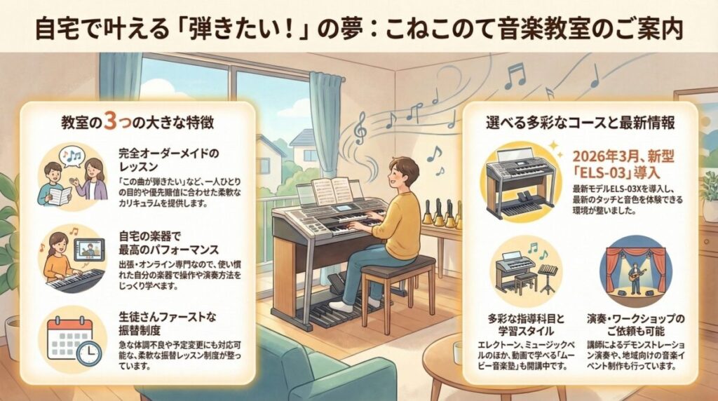 2026年3月10日、ついに新型エレクトーン「ELS-03」シリーズが導入されました!ELS-03Xがこねこのて音楽教室の仲間入りをしてくれましたよ♪