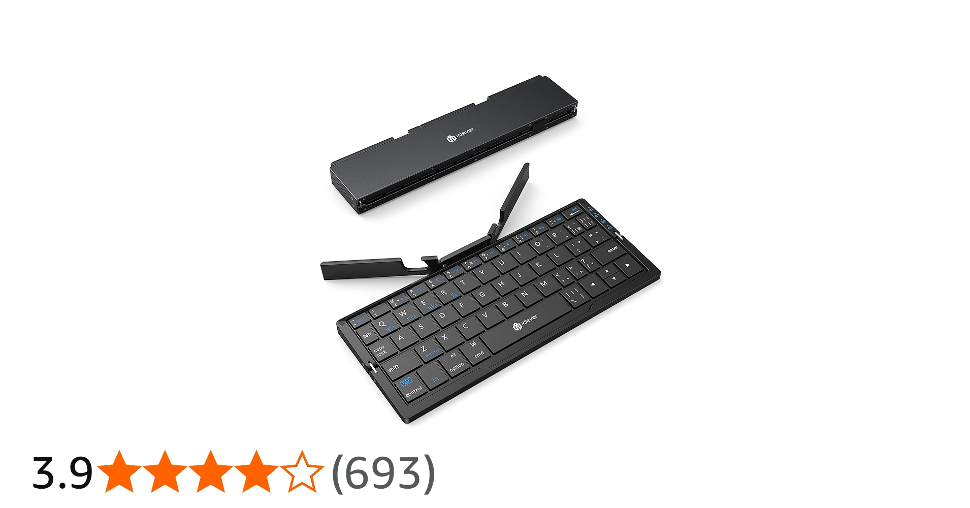 スマホに文字を打つ時、便利!「iClever Bluetoothキーボード 折りたたみ式 二つ折り スタンド一体型 Bluetooth5.1軽量 薄型 ワイヤレスキーボード」