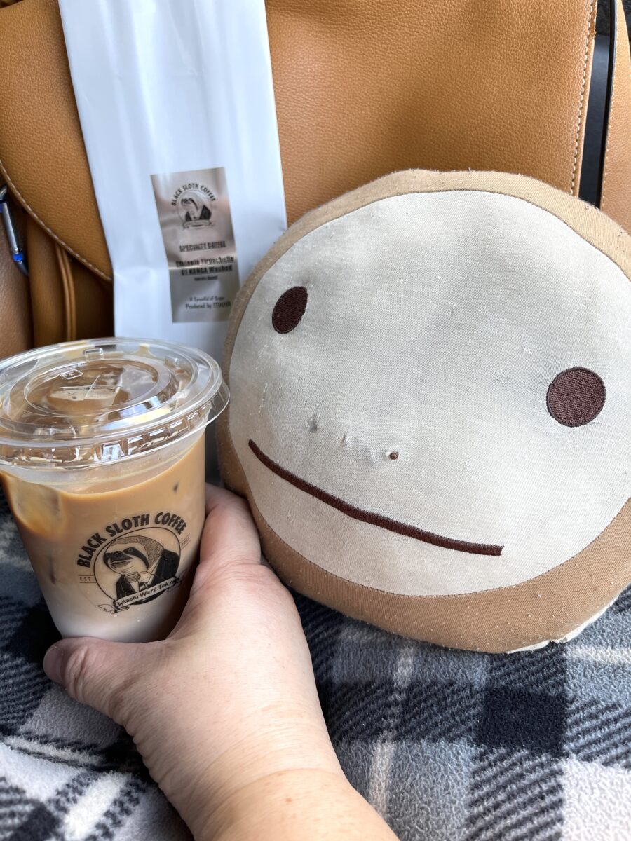 (Top画像は、我が家のぬいぐるみさん「プーくん(ナマケモノさん)」とコーヒーを飲んだ時のものです。おんなじナマケモノさんだぁ!って喜んでました!)