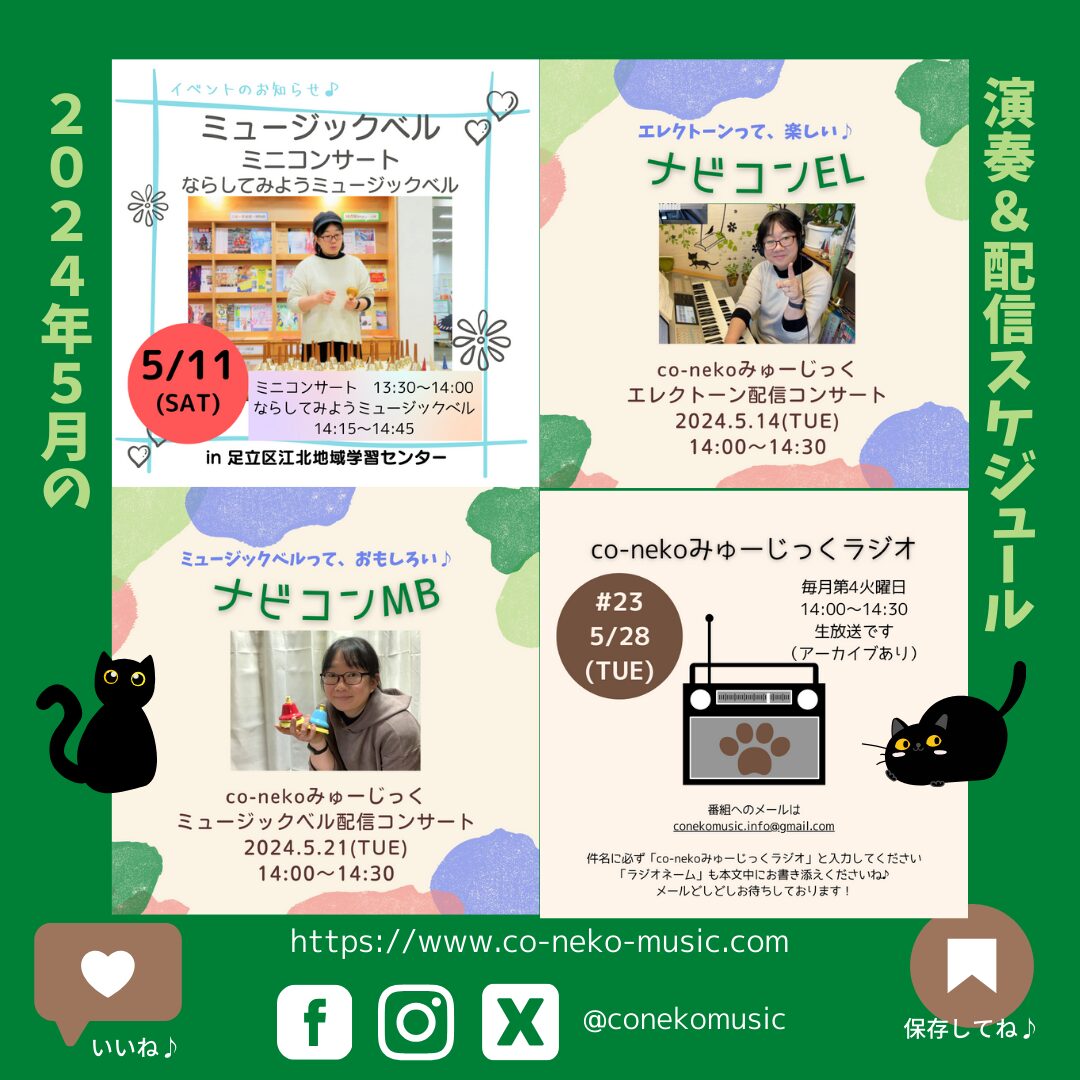 音楽教室からの情報、co-nekoみゅーじっくからのデモンストレーション演奏やワークショップのご案内なども届きますので、ぜひぜひご登録を!お待ち申し上げております♪