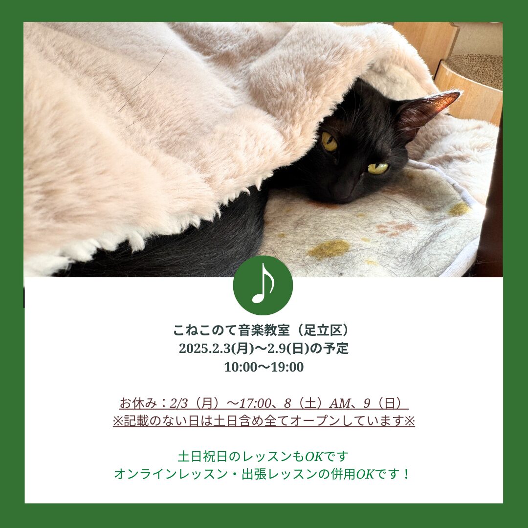 こねこのて音楽教室(足立区)明日2/3(月)は17:00〜19:00オープンです。