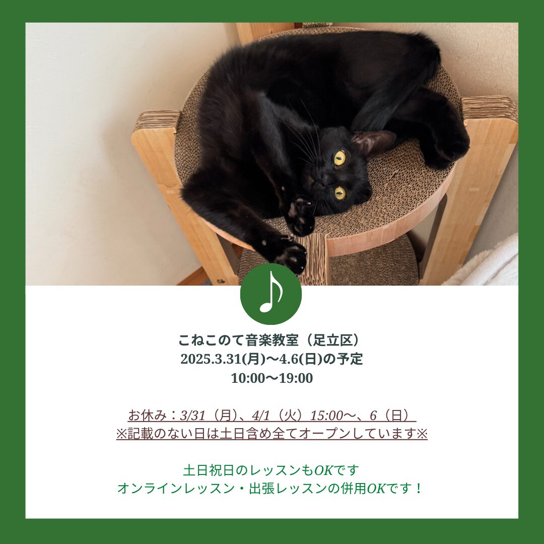 こねこのて音楽教室(足立区)明日3/31(日)はレッスンお休みです。