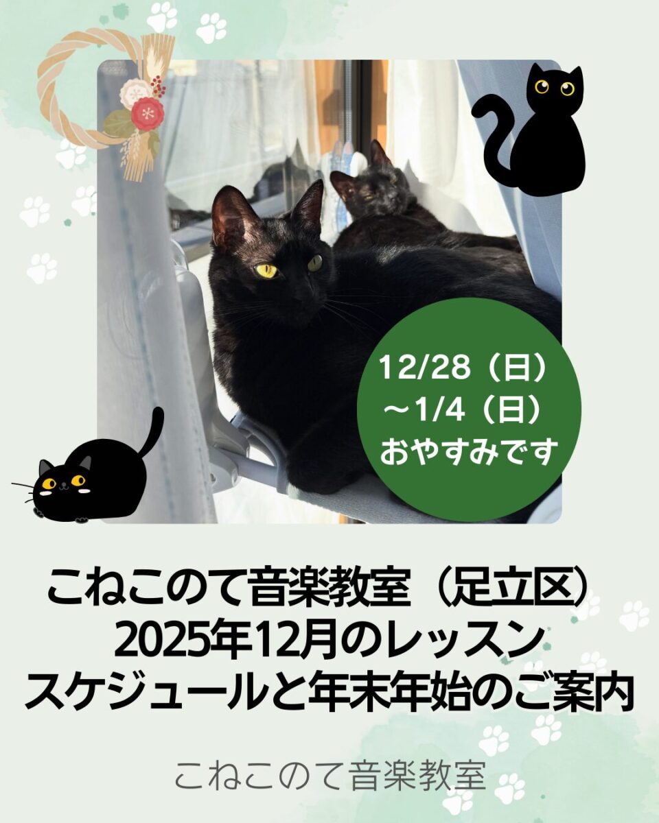 2025年12月のレッスンスケジュール、そして、年末年始についてまとめてみました。