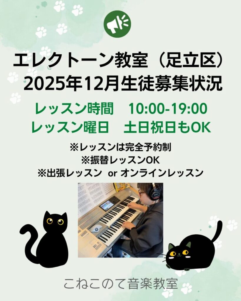 「始めたいと思ったその日からレッスンができる音楽教室」こねこのて音楽教室(足立区)です。