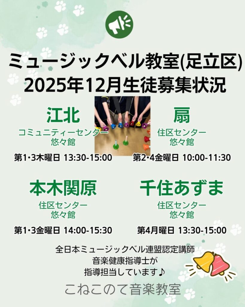 また、足立区江北地域学習センターさんにて「ミュージックベル体験サロン」改め「ならしてみようミュージックベル」を実施しております。