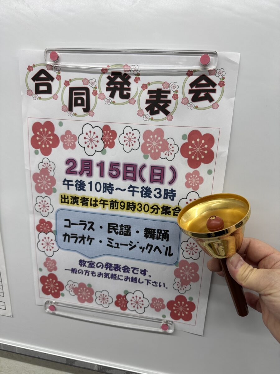 2月15日、足立区扇住区センター悠々館ミュージックベル教室の皆さんと共に「合同発表会」に参加してきました。