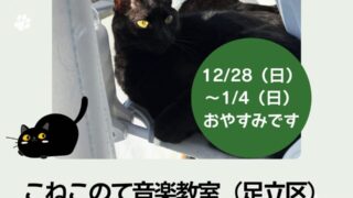 教室ブログ こねこのて音楽教室(足立区)2025年12月のレッスンスケジュールと年末年始のご案内